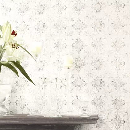 טפט לקיר טפט צורות מדליונים אפור ולבן