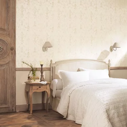 טפטים לחדר שינה, טפט לקיר טפט צורות מדליונים גוון קרם