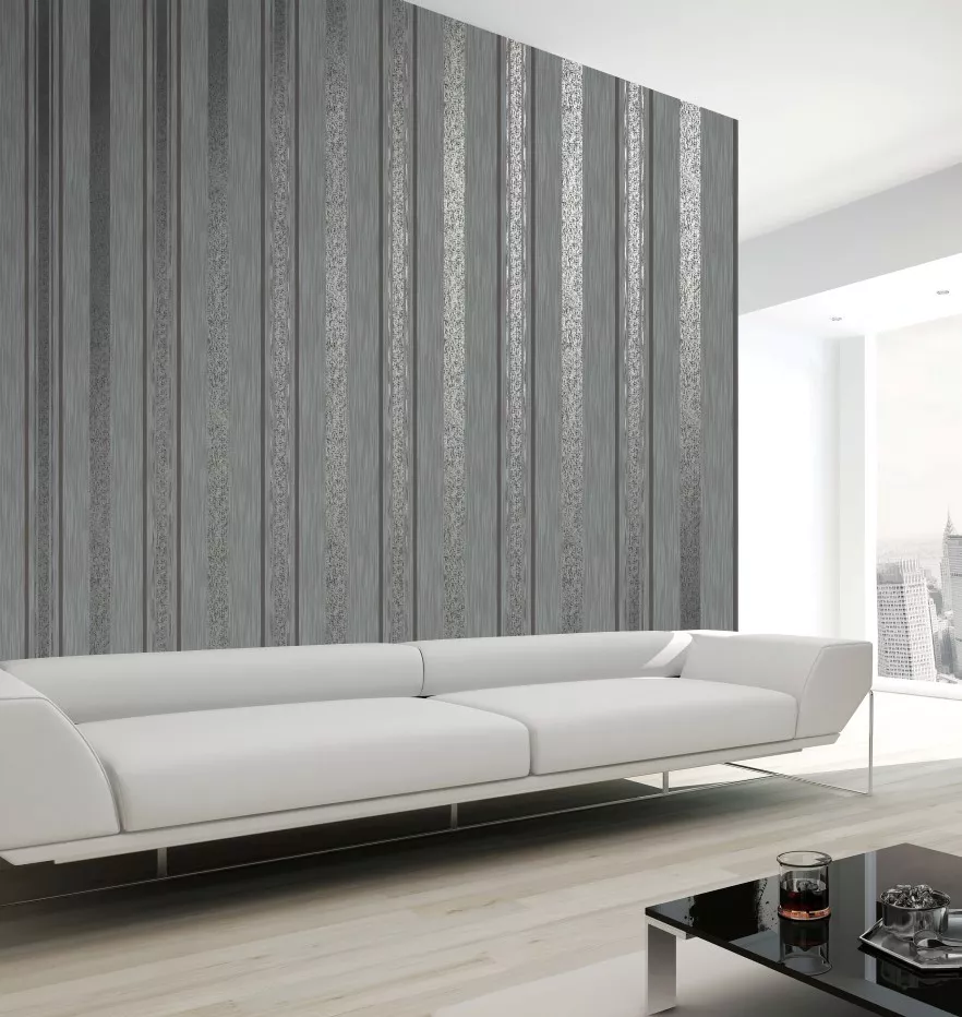 טפט לקיר פסים בגדלים שונים אפור כסף