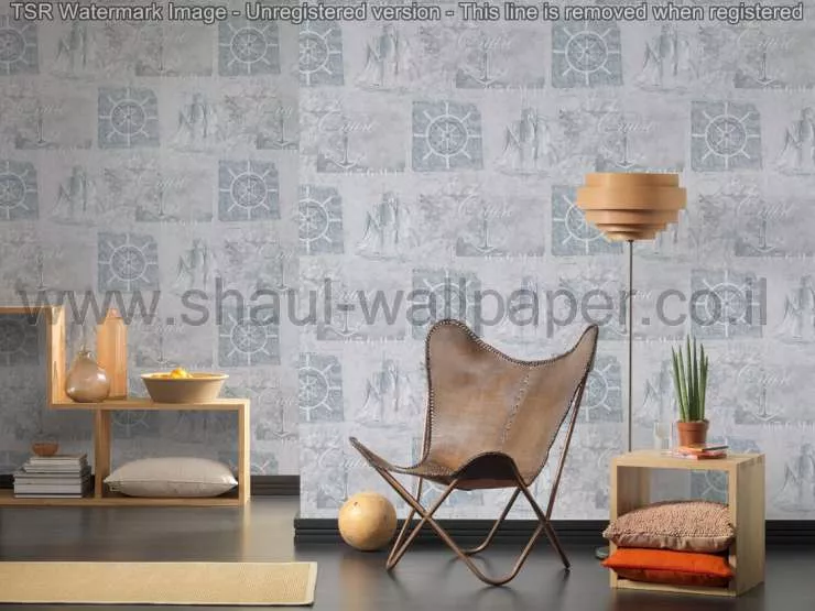 טפטים לסלון, טפטים לחדרי שינה, טפט הגה ספינות ועוגנים בז' לבן