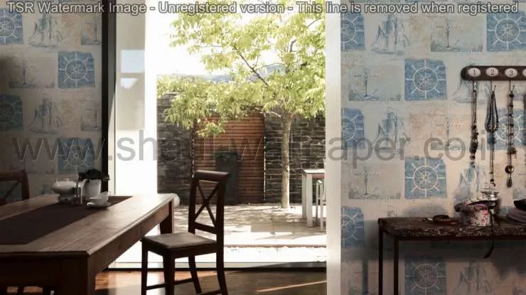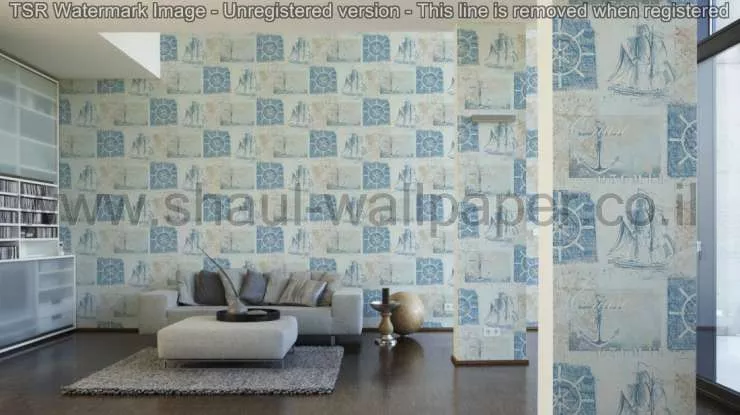 טפטים לסלון, טפטים לחדרי שינה, טפט הגה ספינות ועוגנים אפור לבן