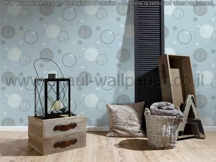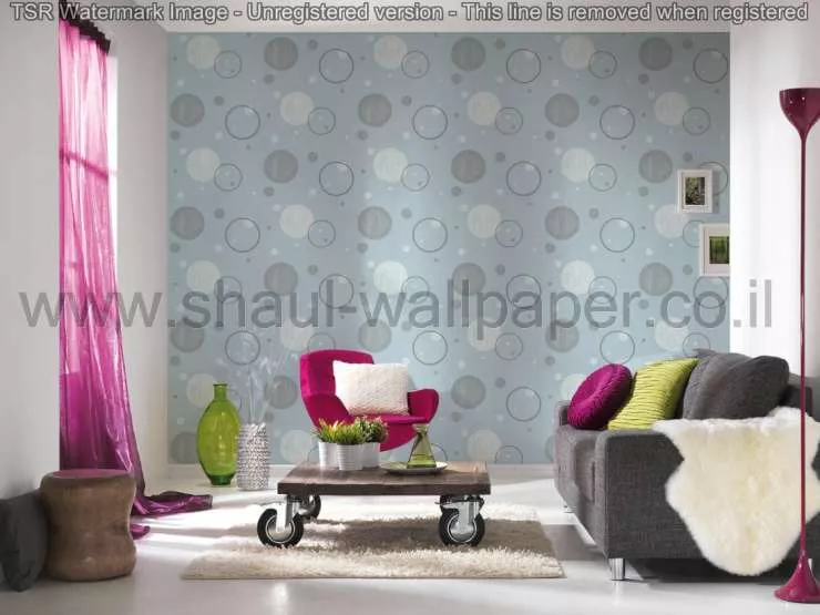 טפט עיגולים בתכלת לבן וכסוף