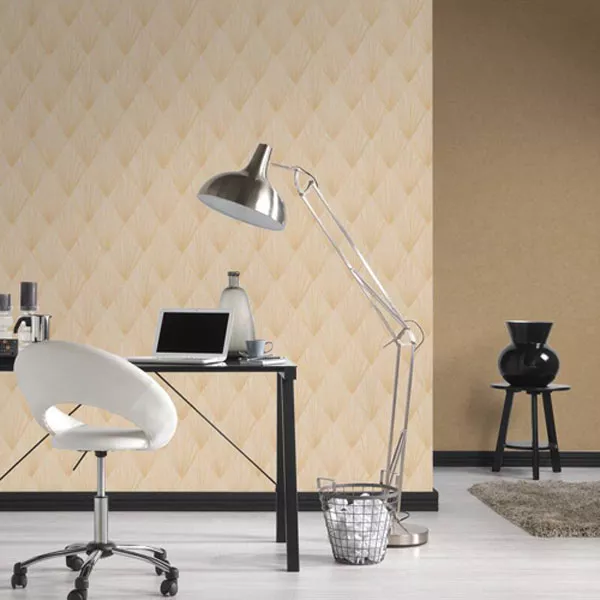טפטים לסלון, פינות אוכל, חדר שינה, וחלל הבית טפט מעוינים גרפיים בגווני בז’ וזהב. הטפט מתאים לכל חלל הבית הטפט חלק עם מרקם עדין .