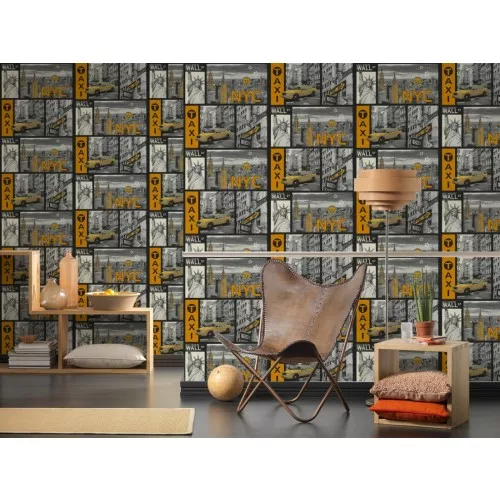 טפט לקיר ניו יורק בתמונות צהוב שחור לבן