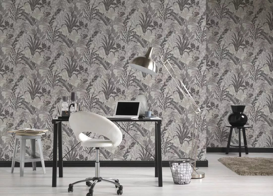 טפטים לסלון, פינות אוכל, חדר שינה, וחלל הבית טפט עלים פרחוניים בגוונים אפורים. הטפט מתאים לכל חלל הבית הטפט חלק עם מרקם עדין .