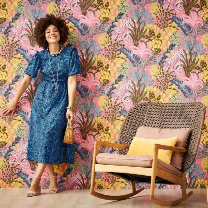 טפטים לסלון, פינות אוכל, חדר שינה, וחלל הבית טפט עלים פרחוניים בגווני צהוב ירוק ורוד וכחול. הטפט מתאים לכל חלל הבית הטפט חלק עם מרקם עדין .