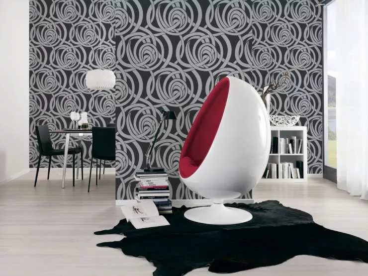 טפט לקיר צורת עיגולים בגוון אפור שחור איכותי מאוד מסוג ויניל.