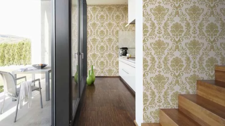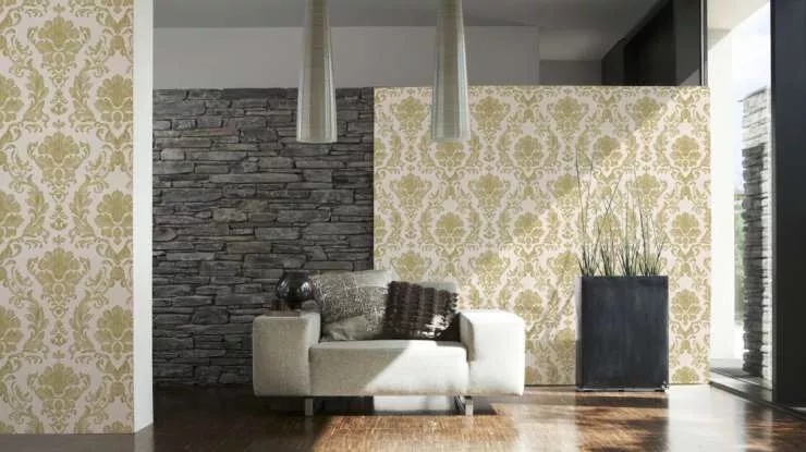 טפט מדליונים בסגנון עלים בגוון זהב שמנת איכותי מאוד מסוג ויניל מתוצרת גרמניה.