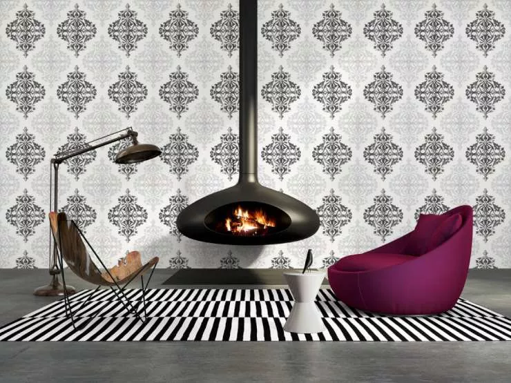 טפט מדליונים תלת מימד בגווני לבן אפור איכותי מאוד מסוג ויניל.