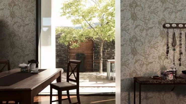 טפט עיטורים זהובים ברקע מנומר איכותי מאוד מסוג NON-WOVEN מתוצרת גרמניה.