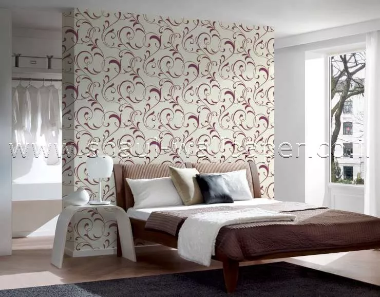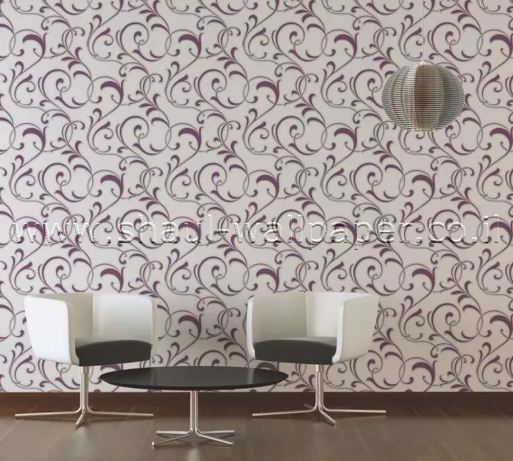 טפט עלים לקיר בגוון קרם סגול איכותי מאוד מסוג ויניל.